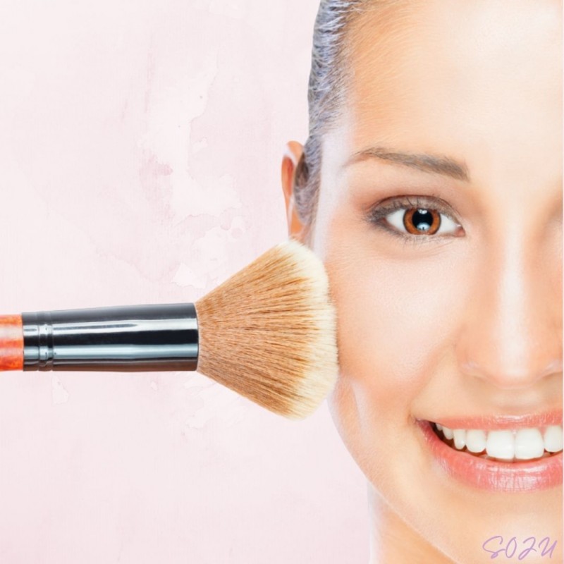 Appliquez la poudre uniformément sur l'ensemble du visage à l'aide d'un gros pinceau.